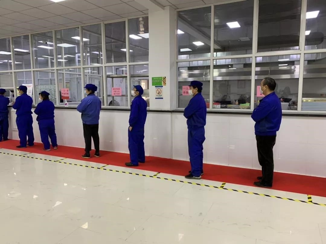 2月19日中午10点45分,长海集团长海公司员工食堂,第一批来就餐的员工排着队在窗口打饭,每个员工之间间隔一米,拿饭之前用消毒液洗手。拿到饭后,每个员工各自落座,摘下口罩开始吃饭。单人单桌,全程无交流,这场景像极了期末考试。负责人介绍,为有效预防员工集聚,集团采取“三批制”错时就餐,每批三四十人,第一批10点45分,第二批11点,第三批11点20分。